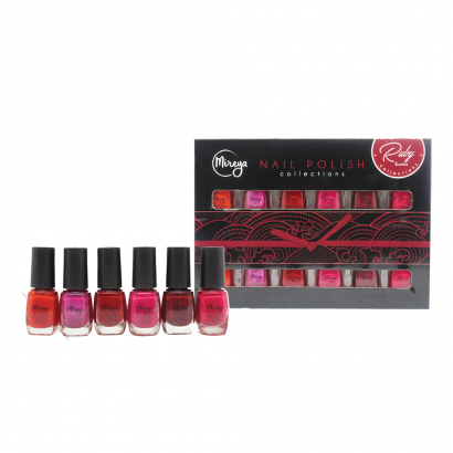 Cat kuku high coverage dalam enam warna cantik yang cocok bagi pecinta warna merah. Warna yang dihasilkan lebih terlihat dan tidak mudah hilang. Dilengkapi dengan kuas aplikator yang tebal dan lebar untuk pengaplikasian yang lebih presisi.